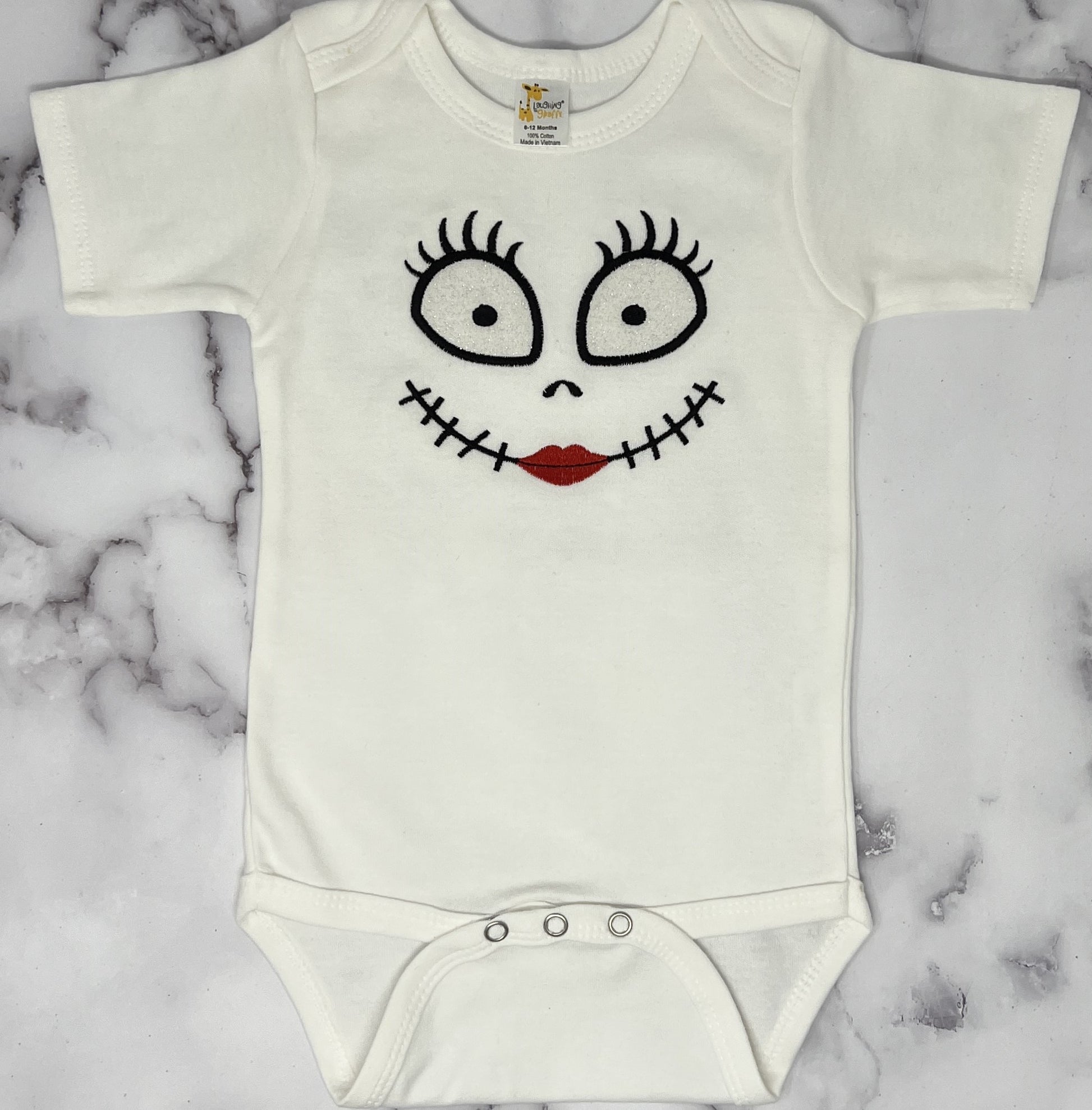 Let your little girl show off her Halloween spirit with this embroidered shirt.