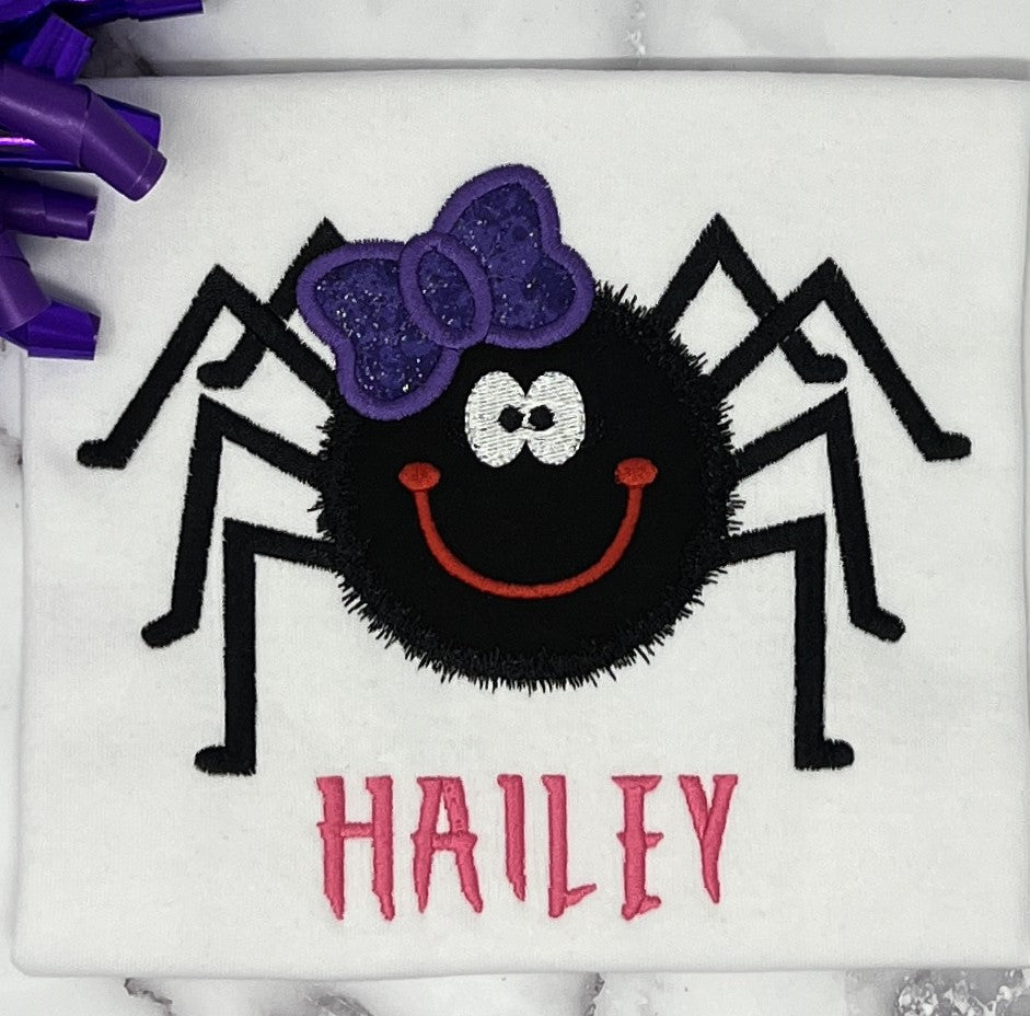 Get ready to spook this Halloween with our Girl Spider Halloween Embroidered Shirt.